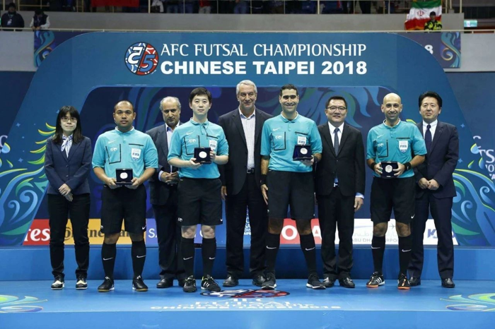 安然参加2018亚足联五人制亚锦赛决赛后接受颁奖