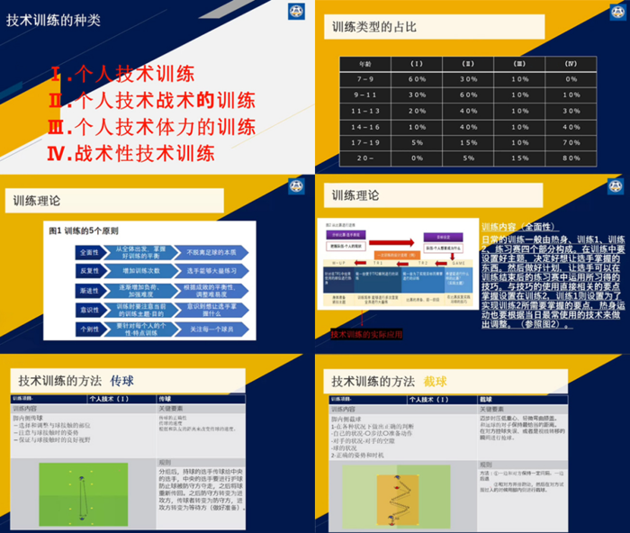 课程中讲师对技术训练的种类、训练类型的占比进行了讲解,并对技术训练的方法进行了分析举例。