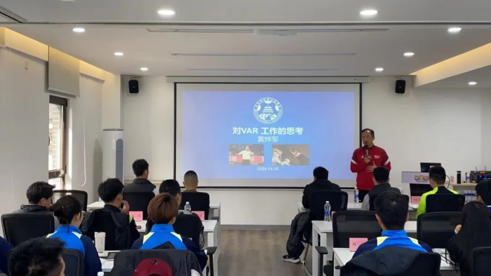 为进一步提升裁判员执法工作,拓宽裁判员执法视野,4月6日上午,北京市足协在小花猫儿足球培训中心组织召开2024年第十二期裁判员技能提升继续教育培训,邀请中国足协裁判技术讲师、监督,北京市足协裁委会副主任黄烨军为国家级、预备国家级及一级精英裁判员进行授课。