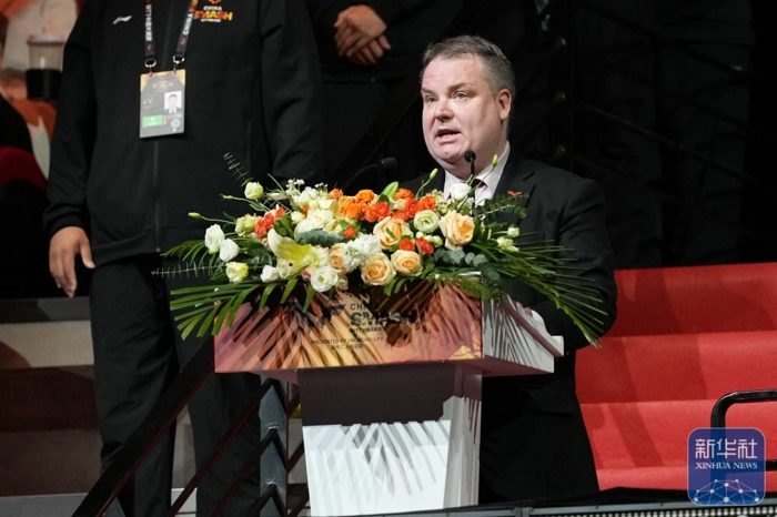 ↑WTT世界乒联首席执行官、国际乒联首席执行官史蒂夫·丹顿在开幕式上致辞。