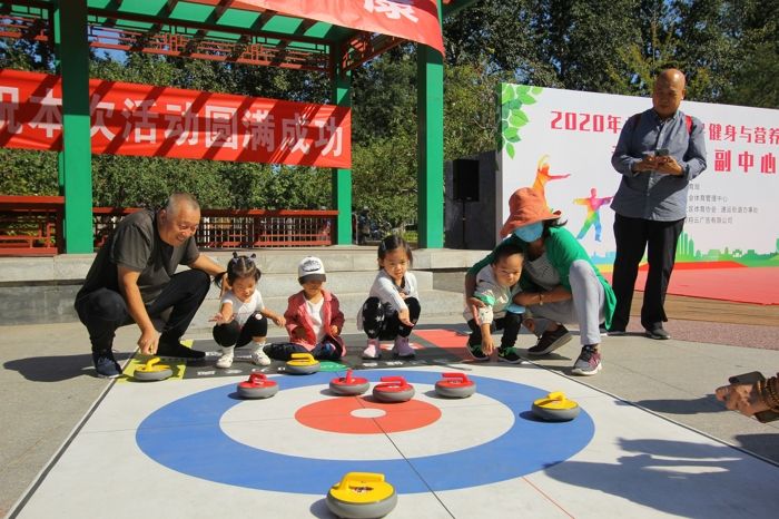 活动现场进行了全民健身节目展演、身体素质测试、科学健身与营养咨询等互动环节。北京恒安中医院《脊柱保健操》创始人、北京市劳动模范获得者、骨科门诊主任高铁铮老师指导居民学习了《脊柱保健操》,让到场居民通过专业测试和咨询,对身体状况加深了解,为科学安排健身活动及合理饮食做出参考。同时通过健康指示板宣传“健康要加油,饮食要减油”,倡导全民健康生活方式,让科学健身与营养相结合,提高全民身体素质和健康水平。此外,为助力2022年北京冬奥会和冬残奥会,还特别加入了旱地冰球、冰蹴球、陆地冰壶等冰雪体验项目,向居民普及冰雪运动知识,传播奥运精神。开展本次活动,有利于普及健康生活、优化健康服务,通过健身项目互动,运动营养咨询,让居民了解到体育锻炼对进行心理调整与身体保健的重要性。