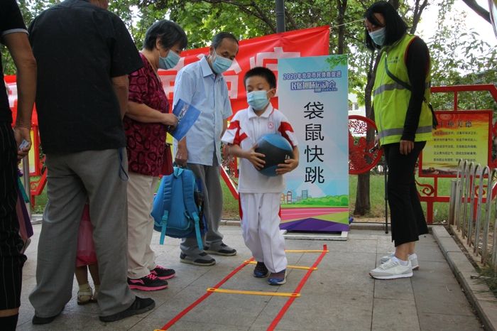 为深入贯彻习近平总书记关于体育工作的重要指示,全面落实《北京市全民健身条例》和《北京市全民健身实施计划(2016-2020年)》,由北京市体育局支持,北京市社会体育管理中心主办,北京市社区体育协会承办的首场2020年北京市民体质促进民俗趣味运动会于9月17日下午在朝阳区芍药居北里二社区红芍广场拉开帷幕。