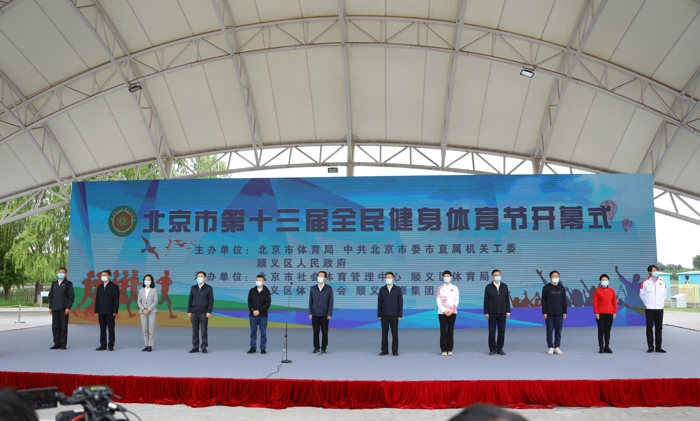 2021年5月16日,以“百载红船路 全民奥运行”为主题的北京市第十三届全民健身体育节在顺义区奥林匹克水上公园盛大开幕。市政府副秘书长尹培彦出席并宣布北京市第十三届全民健身体育节开幕。北京市体育局局长、本届体育节组委会主任赵文致开幕词,顺义区区长龚宗元致欢迎词。国家体育总局群体司副司长邱汝和市民族宗教委副主任周景晓、市园林绿化局副局长高大伟、市总工会副主席赵丽君、团市委副书记王洪涛、市残联二级巡视员郭治斌、顺义区副区长李向英等体育节主办单位、承办单位负责人,以及3000余名健身爱好者参与开幕式。开幕式仪式由北京市体育局副局长、本届体育节组委会常务副主任杨海滨主持,花样滑冰世界冠军佟健宣读市民倡议书,就推进冰雪运动普及,为北京2022年冬奥会奠定群众基础发出了“学习技能、健康生活、引领健身”的倡议。