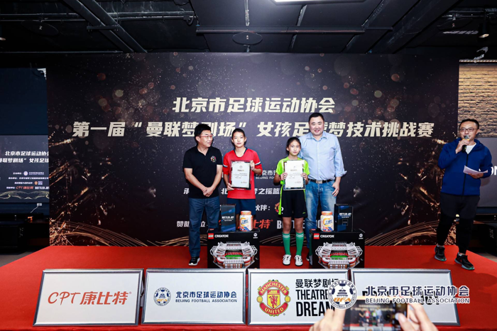 9月24日,北京市足协副主席花雷、北京市足协副主席武又文、北京市足协副秘书长陈长红、中国女足名宿刘爱玲、中国足球发展基金会青少部部长王丽萍以及前中国女足国脚张彤、施萌雨、王丹丹、江帅等人来到曼联梦剧场,出席由北京市足球运动协会主办,北京华锐梦之摇篮承办,康比特、BOTTLED JOY鼎力赞助的北京市足球运动协会第一届“曼联梦剧场”女孩足球梦技术挑战赛的颁奖仪式和闭幕典礼。