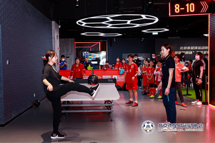 最后,宋语和付琪玥两名小女足队员分别荣获甲组和乙组的冠军,她们还与刘爱玲等老一代“铿锵玫瑰”在TEQ BALL上进行了球技切磋。