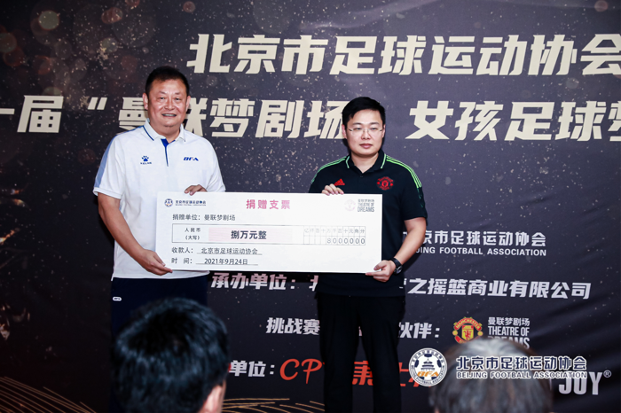 闭幕式后,华锐娱乐董事长张博代表华锐娱乐公司向北京市足球协会捐赠8万元人民币,表明了自身作为社会企业的责任,以及对于北京市当地女足发展的大力支持。北京市足协也授予曼联梦剧场“科技训练体验中心”的称号,作为赛事的官方合作伙伴,曼联梦剧场也将长久地支持北京市足协工作,推动青少年足球事业的发展。