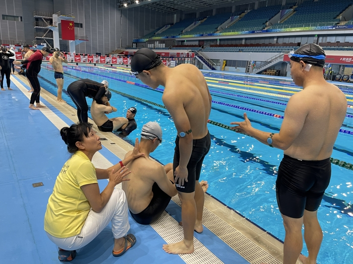 本次培训采取理论教学、模拟训练和情景实训的方式进行,任课教师由王逸(国家游泳救生职业资质培训师、水上救生国家级社会体育指导员)、李国全(国家职业资质游泳救生培训师、水上救生国家一级社会体育指导员)担任。上午开班授课首先介绍了游泳救生的定义和分类、游泳救生的基本原则以及游泳救生的判断与要求等内容,随后陆上基础理论及心肺复苏AED介绍体验,培训讲师对水中头发被抓、单双手被抓、颈部被抱持、腰部被抱持五种被困情况的解脱方法进行了详细讲解,并教授了心肺复苏、AED(心脏自动体外除颤仪)使用。受训学员针对理论学习中出现的疑点、难点问题及时交流了经验。