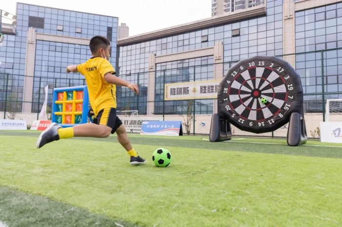启动仪式现场设置了多种足球创意游戏,吸引了900余名市民到场参加。参与者们在“足球飞镖”中施展精准脚法,弹无虚发;在“超级障碍赛”中跨障碍、跃“龙门”,身手矫捷;在“文武双全”中展现足球知识储备,有勇有谋;更有全家齐上阵的“足球大脚丫”等亲子项目,让广大市民在健康身心的同时,更享受了难得的亲子时光。