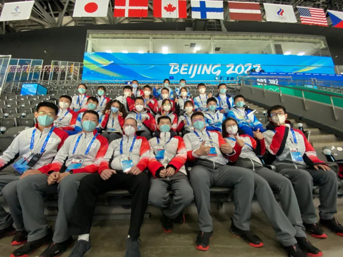 虽然工作的压力大,但回到休息室后我们会无比的愉悦,只因我们有位可爱的竞赛长——纪部长。工作之余为了缓解我们的疲劳,竞赛长会亲自为我们表演一些“娱乐”节目,一名音乐老师一样带着我们唱冬奥会的主题曲“一起向未来”,一句魔性的“fly to the sky”,听一遍就能让人上头,萦绕耳畔,挥之不去。团结、专注而有趣的团队,在任何困难和压力面前都能出色的完成任务,在这样的工作环境中与大家一同为冬奥会奉献自己的一份力量,我倍感骄傲。