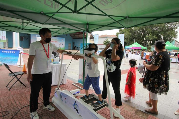 本站活动走进了北京城市副中心,活动伊始,来自大营村的优秀健身队伍进行了展示,精彩的表演展现出辖区村民全民健身的热情,博得了在场观众的阵阵喝彩声,充分展现了村民们积极阳光的精神风貌。活动现场设置了身体素质测试、科学健身与营养咨询、冰雪项目体验等互动环节。恒安中医院的养生专家现场教学示范脊柱保健操,通过6分钟简便直观的锻炼学习,村民们很快就掌握了动作要领;营养专家为大家讲解日常肠道养生和科学均衡饮食健康知识。讲座结束后,展演队伍和现场群众现场进行身体素质项目测试,大家通过不同的体测项目了解自身肺活量、握力、平衡、反应等身体素质指标,从而更直观了解自己的身体状态,有利于日后有针对性的进行科学锻炼,通过营养知识的学习,调整适合自己的膳食习惯。活动现场还融入了VR模拟滑雪、陆地冰壶等项目体验和比赛,现场通过体验、比赛和互动相结合的方式,让大家了解冰雪项目知识。