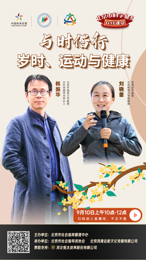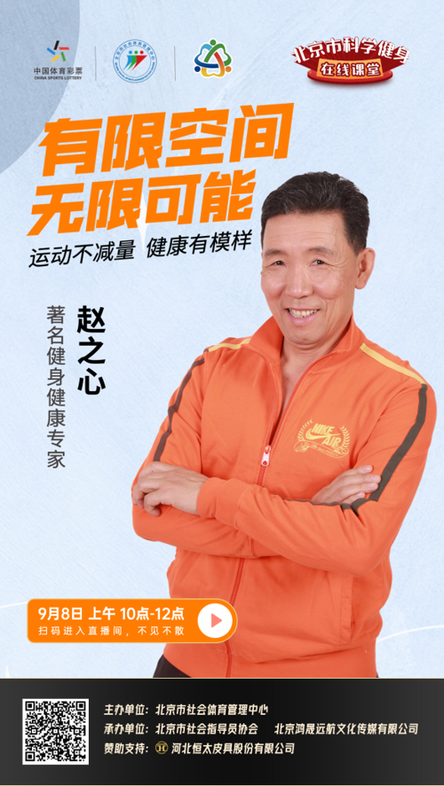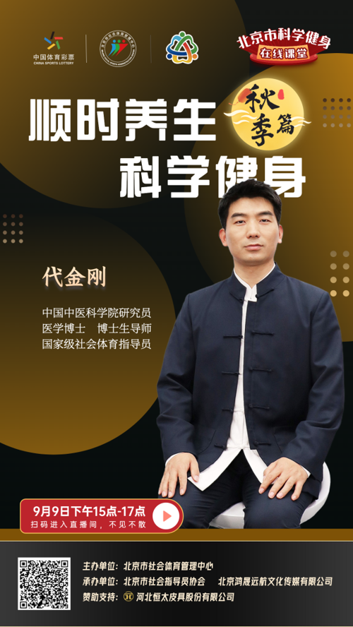 北京市全民健身科学健身指导大讲堂系列活动——科学健身在线课堂,拟于中秋节期间(9月8日至10日),采取网络直播的方式进行授课,向市民普及健身健康知识、宣介新兴体育项目、传授科学健身技能,敬请关注。