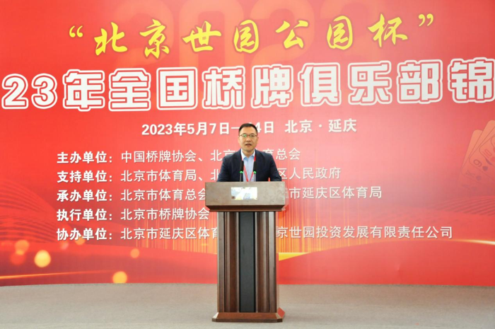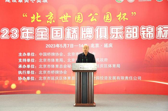 任江浩区长首先代表延庆区人民政府,对各位嘉宾及广大桥牌爱好者表示热烈欢迎。他提到依托延庆区优质的生态旅游资源和赛会场馆遗产,全国桥牌俱乐部锦标赛再次走进世园,落户延庆,希望通过桥牌这项益智类运动向全国展示延庆区全域旅游资源和人文魅力,让更多的朋友们感受绿水青山和冰天雪地带来的休闲体验。