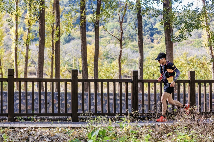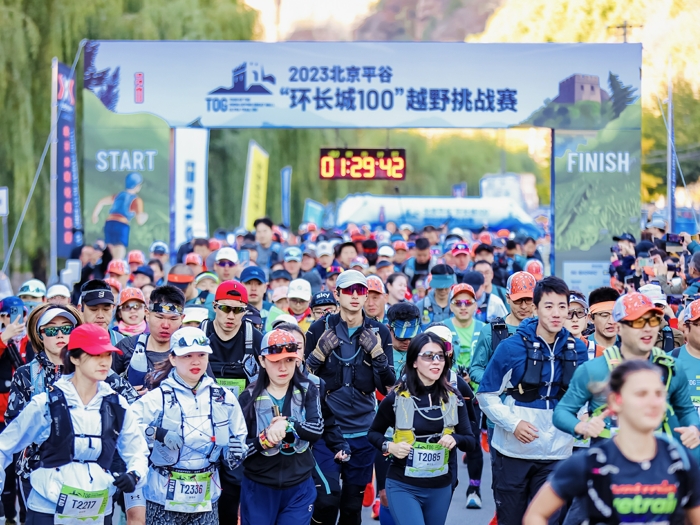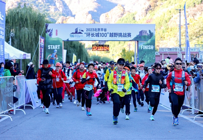 10月22日,2023北京平谷环长城100越野挑战赛在平谷区镇罗营镇鸣枪起跑。此次赛事共吸引了近千名国内外越野跑爱好者参与。