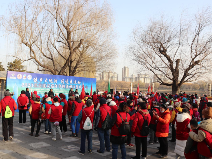 12月9日上午,由北京市体育总会秘书处、北京市徒步运动协会、北京青少年服务中心、通州区体育局、通州区融媒体中心、通州区园林绿化局等单位主办,通州区社会体育事务中心、大运河森林公园管理处、通州区徒步协会、北京易走体育文化有限公司等单位承办的“健步大运河、通通来运动”2023(第八届)北京徒友嘉年华暨通州区徒步大会启动仪式,在大运河森林公园柳荫广场成功举行。来自首都社会各界的近三百名徒步爱好者兴致昂扬地行走在大运河畔,用脚步丈量大运河的发展,用眼睛发现大运河的变化。