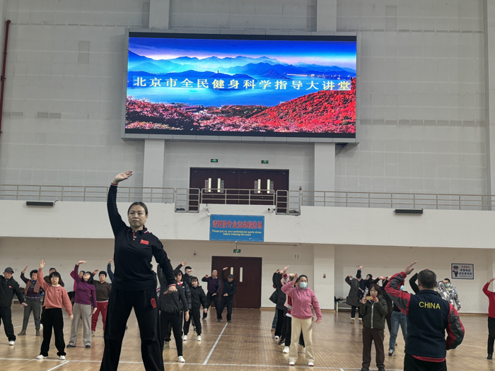 北京市全民健身科学指导大讲堂一直坚持以人民为中心的原则,不断加大科学健身供给,深入一线开展科学健身指导课程。健身气功一直是深受大众喜爱的民族传统体育项目。健身气功·八段锦这套功法更是因其简单易学、健身效果显著,成为健身气功功法中的“爆款”。首都体育学院教师、全运会金牌教练员汤铁军两次前往平谷区,为当地市民教授健身气功·八段锦,在平谷体育中心两次课程,每场都爆满,市民跟随老师认真学习一招一式。全国武术太极拳锦标赛冠军仝保民在石景山区广宁冬奥广场开展的太极伞课程也吸引了众多太极爱好者的积极参与。著名健身健康专家赵之心,在顺义区理想汽车有限公司开展健康与健身科普讲座,课程中针对企业员工久坐少动、运动模式单一特点,老师也给出了相应的运动建议。