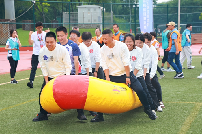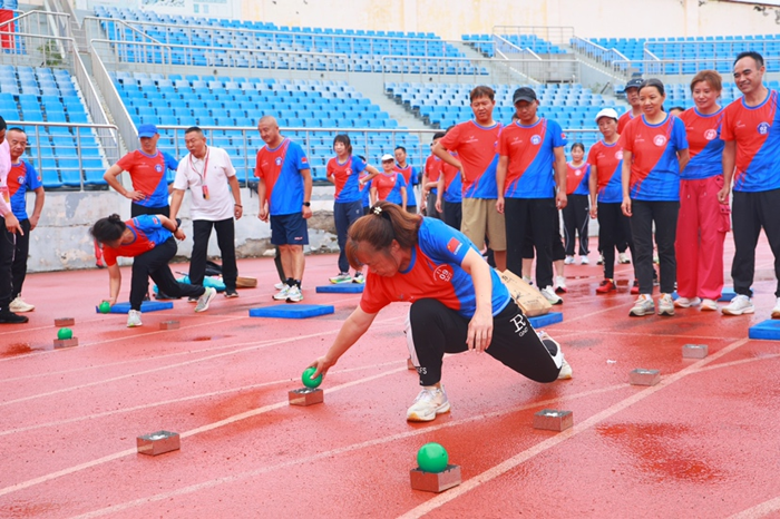 比赛分为上、下午两个单元,各代表队按照分组分别参加了对应单元的比赛。比赛中,每支队伍的10名运动员共同参加了吹踩气球、平衡前进、手卷辘轳、屈体移球、袋鼠快跳、翻转大牌等6个体质促进项目和砥砺前行、勇毅奋进、披荆斩棘、棋逢对手4个趣味项目的测试,现场热烈非凡。平衡前进项目中,选手们小心翼翼地迈出每一步,努力在保持平衡的同时快速前进,展现出了出色的身体控制能力;手卷辘轳项目则充满了技巧与挑战,选手们充分协调手部和身体的动作将重物卷起,不仅考验了他们的力量,更凸显了身体的协调性……每个项目都充满了趣味性和挑战性,吸引着选手们尽情发挥,展现自我。