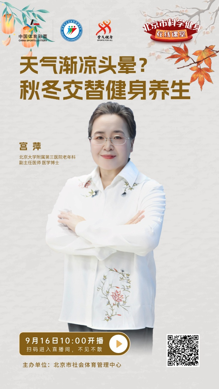 为倡导文明健康生活方式,普及科学健身知识和技能,提高市民身体素质和科学健身水平,北京市社体中心拟定9月16日,开展北京市科学健身在线课堂活动,直播海报附后,敬请收看。