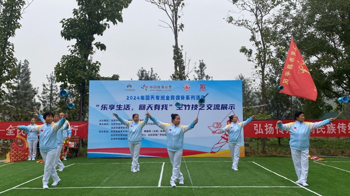 2024年10月26日上午,一场别开生面的空竹技艺交流展示活动在北京市昌平区天通苑南街道的社区天通西苑西一区热烈举行。此次活动以“乐享生活,回天有我”为主题,由北京市体育局、北京市体育总会联合主办。