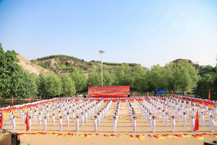 本次比赛内容为长稠扇《中国美》,大赛分为两个环节:首先进行的是集体展示,在蓝天白云、绿树红花的映衬下,参赛队员们挥舞的长稠扇像一团团燃烧的火苗,迎风飘动,一张张笑脸表达着对美好生活的向往;随后是正式的比赛环节,比赛分为东、西两场地同时进行,参赛队员们动作整齐、精神饱满,努力将各队全民健身的成果展示给评委和所有观众。