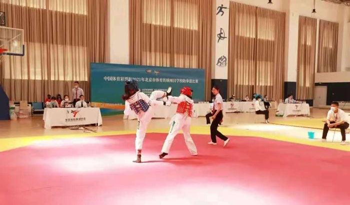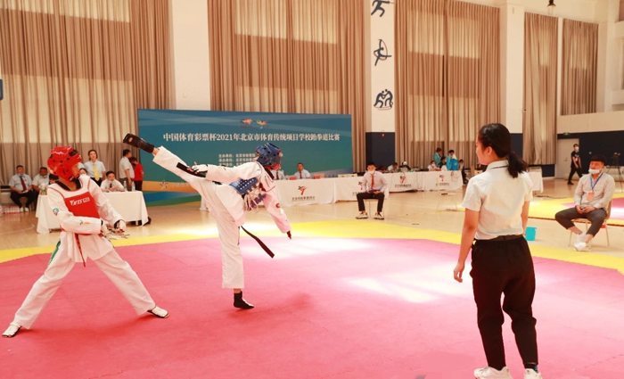 “中国体育彩票杯”2021年北京市体育传统项目学校跆拳道比赛于2021年6月19-20日在人大附中北京技术开发区学校体育馆举办。本次比赛由北京市体育局、北京市教育委员会主办,北京市跆拳道协会承办。比赛共设小学、初中、高中三个组别,男、女共47个级别。人大附中北京经济技术开发区学校、首师大附属丽泽中学等全市的18个传统项目学校、中小学校、各区体校的241名运动员同场竞技。顺义区选派男女共计43人参加比赛。