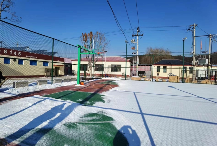 溪翁庄镇东智东村篮球场是在原有篮球场地翻建篮球场,规划使用面积726.87平方米,翻建篮球场面积581.01平方米。首先拆除原有场地设施,对土基层进行碾压整平,上铺25cm厚砂砾层、15cm厚级配碎石,浇筑 C25混凝土垫层 。待满足施工条件后,施工弹性塑胶地面,采用聚氨酯划线 。场地内设1副室外电动液压篮球架 ,四周设立4m高围网,8套球场专用太阳能灯。极大提升了新建篮球场的使用感,满足了周边群众的体育健身需求。