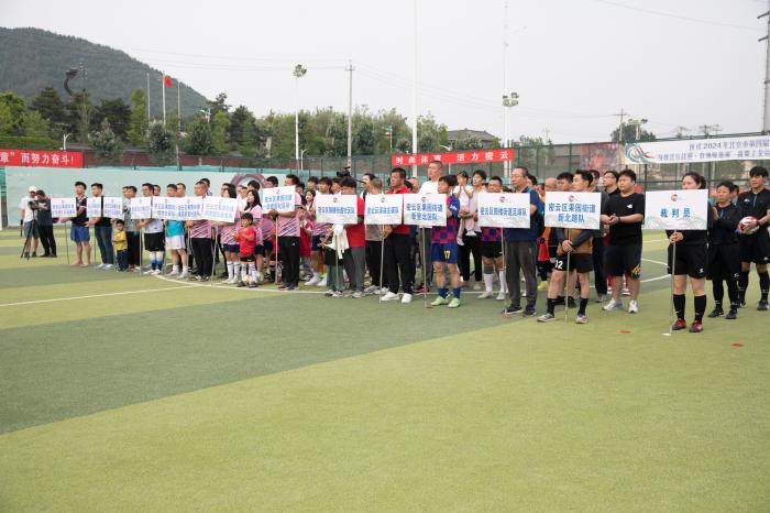 6月6日,2024年北京市第四届社区杯八人制足球赛暨“身披北京战袍·直通粤港澳”我要上全运足球项目选拔赛密云区预赛开幕式在密云冶仙塔足球场激情开赛,来自全区12支参赛队伍近300名足球运动员参加。