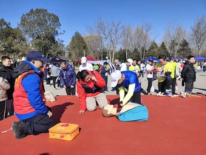 为加强我市体育组织赛事组织应急救护能力建设,向群众宣传普及体育运动应急常识,2月25日,2023年北京市体育组织应急培训活动(园博园站)在第五十一届公园半程马拉松北京公开赛的现场成功举办,千余名参赛运动员、志愿者及工作人员共同参与培训。