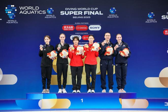 5月2日至4日,2025年世界泳联跳水世界杯总决赛(北京)在国家游泳中心成功举办。时隔6年,世界最高水平的跳水赛事世界杯总决赛再度来到北京,本届赛事由世界游泳联合会主办,中国游泳协会与北京市体育局共同承办,共有来自16个国家和地区的73名运动员参赛,中国队派出由全红婵、陈芋汐、陈艺文、昌雅妮、王宗源5位巴黎奥运会冠军领衔的10名主力队员参赛。最终中国队收获9金4银,包揽全部项目冠军。