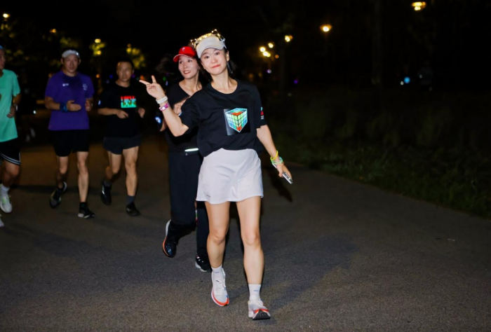 夜跑活动以城市绿心活力汇为起终点,跑步爱好者们围绕城市绿心森林公园内的星型环路夜跑,一路上荧光饰品闪亮,欢声笑语不断,五瓣花的星型运动轨迹让跑者的夜跑活动更具浪漫与迷人的色彩。