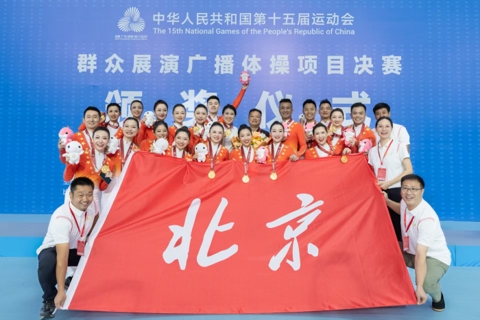 9月21日,第十五届全国运动会群众展演广播体操项目决赛在中山大学珠海校区体育馆圆满落幕。北京代表队凭借整齐划一的动作、精准流畅的节奏和昂扬饱满的精神状态,力压湖北、广东、天津等劲旅斩获一等奖,创造了北京在全运会广播体操项目上的历史最佳战绩。