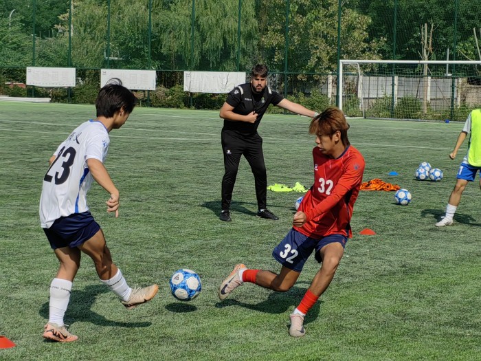 参加本次训练营的20名运动员,都以饱满的热情和坚定的意志投入到每一天的训练中。训练营特邀欧足联PRO级教练保罗担任主教练,其拥有丰富的西班牙职业青训经验,曾深度参与当地俱乐部青少年培养体系搭建。助理教练厄瓜尔德同为西班牙籍,持有欧足联A级教练资质,二人形成专业互补的教学搭档。五天的训练围绕技术打磨、战术理解、体能强化三大维度展开。从基础的传接球身位调整、停球过人技巧,到进阶的小区域控球、无球跑位策略,教练团队遵循循序渐进的原则,让不同基础的学员均能获得适配提升。