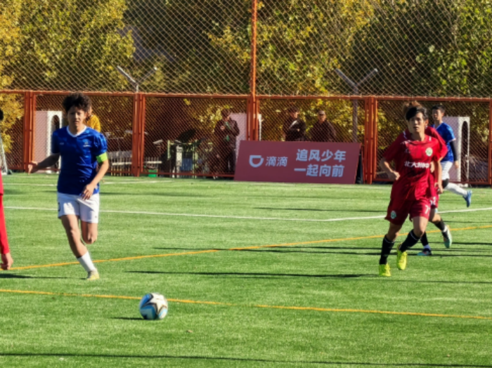 球场上,少年们的身影格外耀眼。这项赛事自2020年创办以来已连续举办五届,累计进行了约400场比赛,吸引参赛人员超4000人。今年的赛事得到中国足球发展基金会和北京嘀嘀无限科技发展有限公司的大力支持,依然延续着往日的精彩。赛事设置了男子U17、男子U15、女子U17、女子U15四个组别,共有59支球队报名参赛,约1400名年轻球员在这个初冬时节,为了心中的足球梦想而拼搏。
