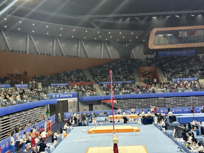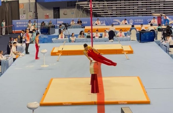 11月14日晚,十五运会体操男子个人全能决赛在肇庆新区体育中心体育馆进行。上届冠军、北京队老将肖若腾获得亚军,湖南队名将张博恒获得冠军。