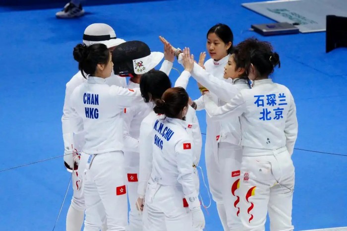 在女子重剑团体比赛中,刘畅、梁馨艺、石琛兰、邢瑶4位选手敢打敢拼、配合默契,最终斩获铜牌,为北京代表团增光添彩。