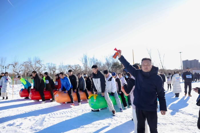 由顺义区体育局、顺义区园林绿化服务中心主办,北京音峪文化传媒有限公司承办的顺义区冰雪运动欢乐季启动仪式暨顺义区冰雪趣味运动会于2025年12月31日在顺义区和谐广场成功举办。顺义区人民政府副区长周鑫;市体育局社体中心主任孔宪菲;仁和地区党委书记申志红;顺义区市场监管局党组书记、局长李光明;顺义区体育局党组书记、局长王忠诚;顺义区融媒体中心党组书记、主任杨进军;顺义区园林绿化服务中心党组书记、主任张海泉;顺义区园林绿化局一级调研员郭振东;顺义区委宣传部副部长闫萍;顺义区教委副主任王金龙出席开幕式。来自全区各镇、街道、委、办、局、公司的26支参赛队296名队员齐聚一堂,共同奏响了冬日健身的激昂乐章。