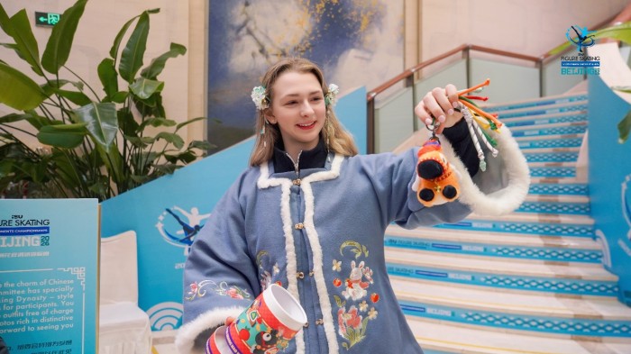 赛事组委会介绍,由于四大洲锦标赛是不少选手冬奥前的最后练兵,又恰逢中国春节前夕,组委会既希望选手在这里收获好运、冬奥再创佳绩,也希望大家感受中国传统文化:桃花心愿树寄托“心想事成”,马年盲盒寓意“马到成功”,中国传统服饰带来“穿越”体验。酒店内,柱子、楼梯皆覆赛事主视觉,让各国选手感受东道主的热情。