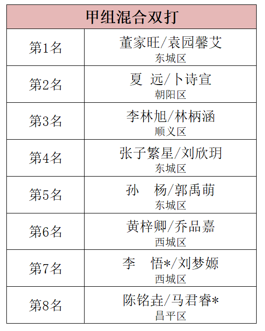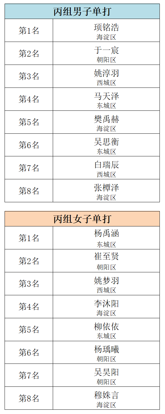 北京市第十六届运动会乒乓球比赛(青少年竞技组)9月4日比赛成绩公告