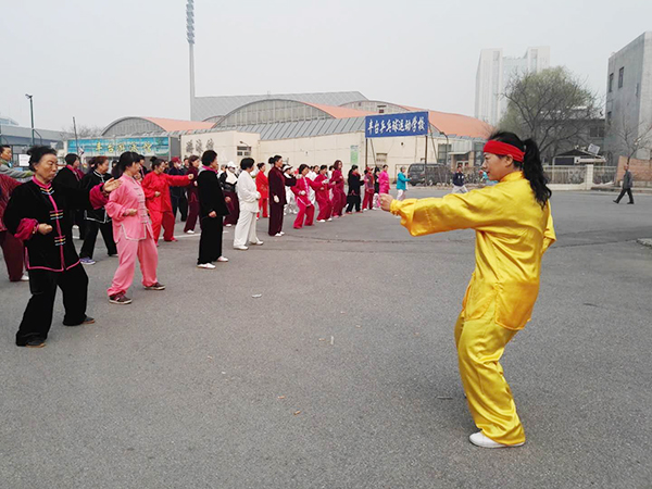 作为一名社会体育指导员,张翠平常年在丰台花园带领她的团队进行太极拳和健身气功锻炼。常去丰台花园锻炼的人都知道,丰台武协四分会常年坚持早、晚两次锻炼,寒暑不辍。这样紧凑的工作安排,虽然增加了张翠平的工作量,但给健身的朋友提供了很大方便,有些白天上班的人就可以在晚上来锻炼。